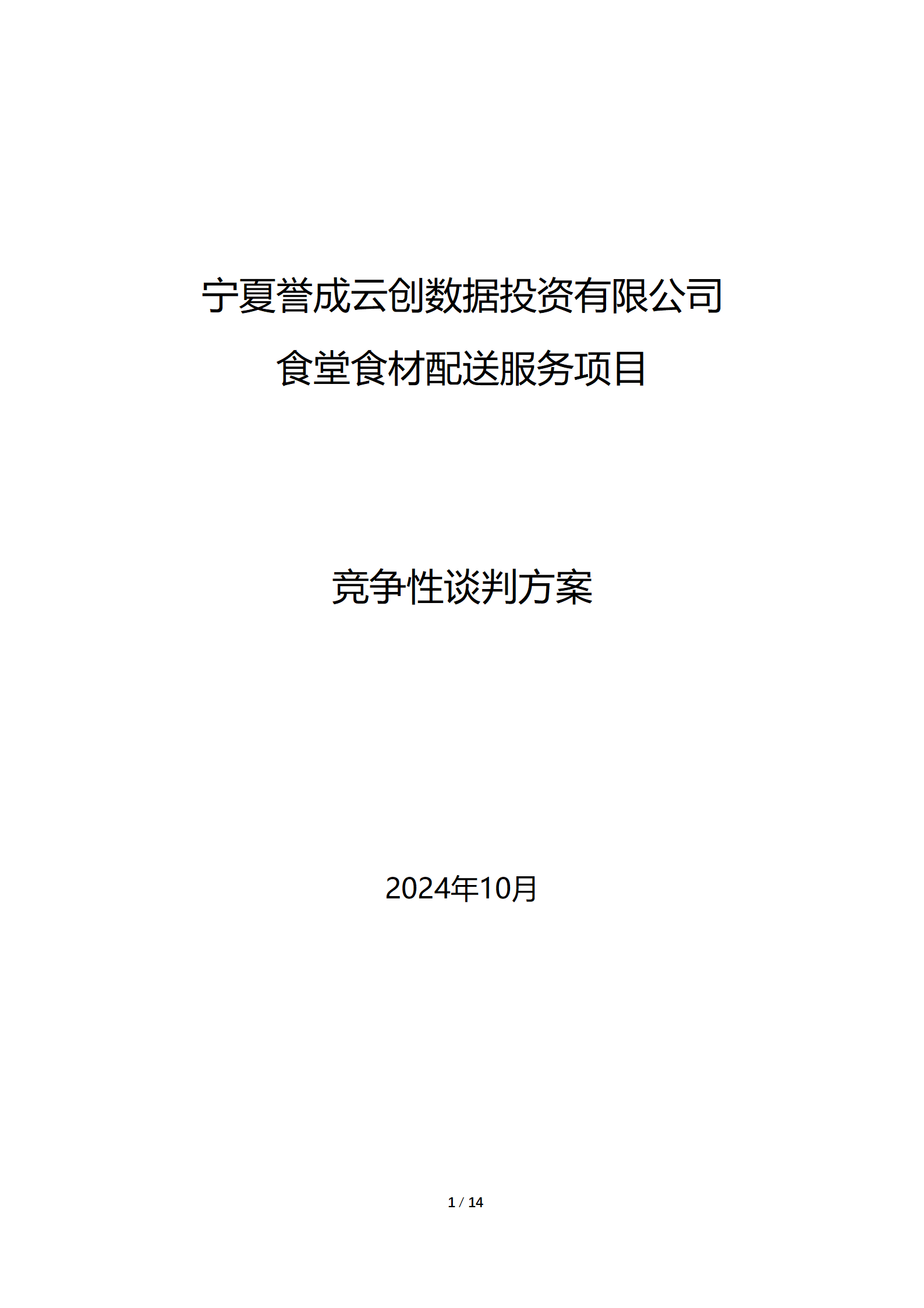 寧夏譽(yù)成云創(chuàng)數(shù)據(jù)投資有限公司現(xiàn)采購(gòu)食堂食材配送服務(wù),詳細(xì)采購(gòu)信息參見(jiàn)附件詢(xún)價(jià)文件。
